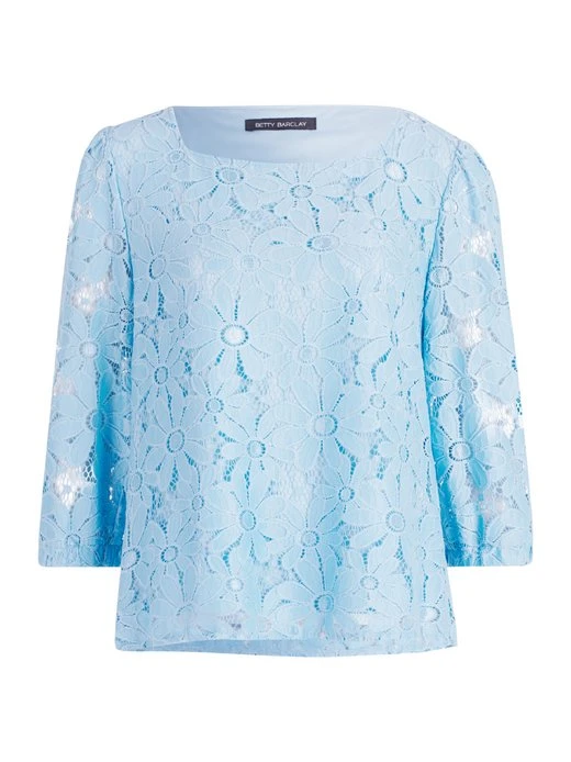 Dieses Teil bringt jede Menge Glamour in den Alltag! Diese modische Spitzenbluse von Betty Barclay ist ein Must-Have in jedem Kleiderschrank! Durch den Karree-Ausschnitt, die 3/4-Ärmel mit einem kleinen Bündchen und der Spitzenapplikation im Blumenmustersorgen für einen femininen Look.